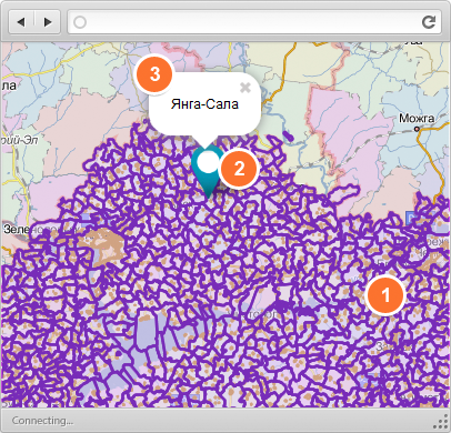 Используется для подключения слоя, состоящего из объектов, подгружаемых через Ajax запрос. С возможностью применения кластеризации